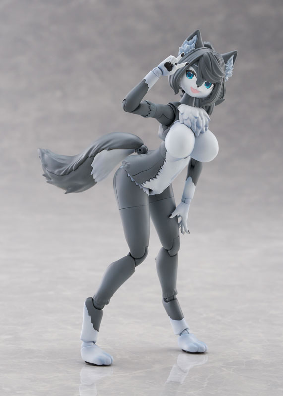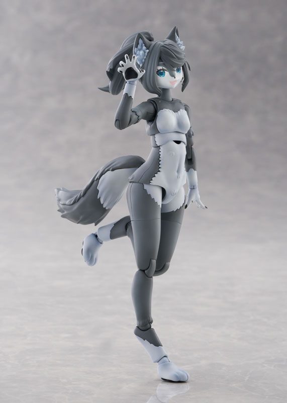 けもプラメインキット第3弾は「ハイイロオオカミ」!ハイイロオオカミは別名タイリクオオカミとも呼ばれ、北半球に広く存在している代表的なオオカミです。棲息地域や個体によって、灰色、黒、白、茶色など体毛の色が様々ありますが、キットではダークグレーとライトグレーの二色で成型されています。ニホンオオカミより大きいファーやシッポ、緩く巻かれた髪とポニーテールが特徴的です。