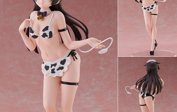 衣装は牛をモチーフにしたフリューオリジナルの水着衣装。セクシーさとキュートさを絶妙に融合しました。華奢でスタイルの良いボディラインは造形で丁寧に表現。繊細な彩色でつやのある肌に仕上げました。美しい黒髪には少し彩度の高いカラーを入れることで、光を受けて輝く“天使の輪”を再現しました。
